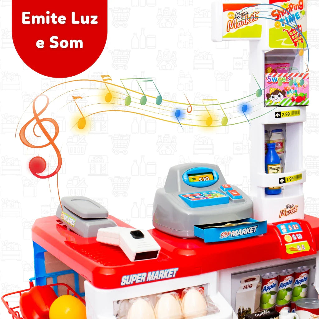 Mercadinho Infantil Caixa Registradora e Carrinho 48 peças